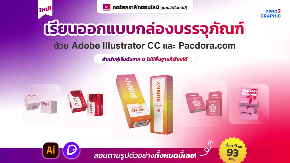 คอร์สเรียนออกแบบกล่องบรรจุภัณฑ์ ด้วย Adobe Illustrator CC และ Pacdora.com (สำหรับผู้เริ่มต้น 0)